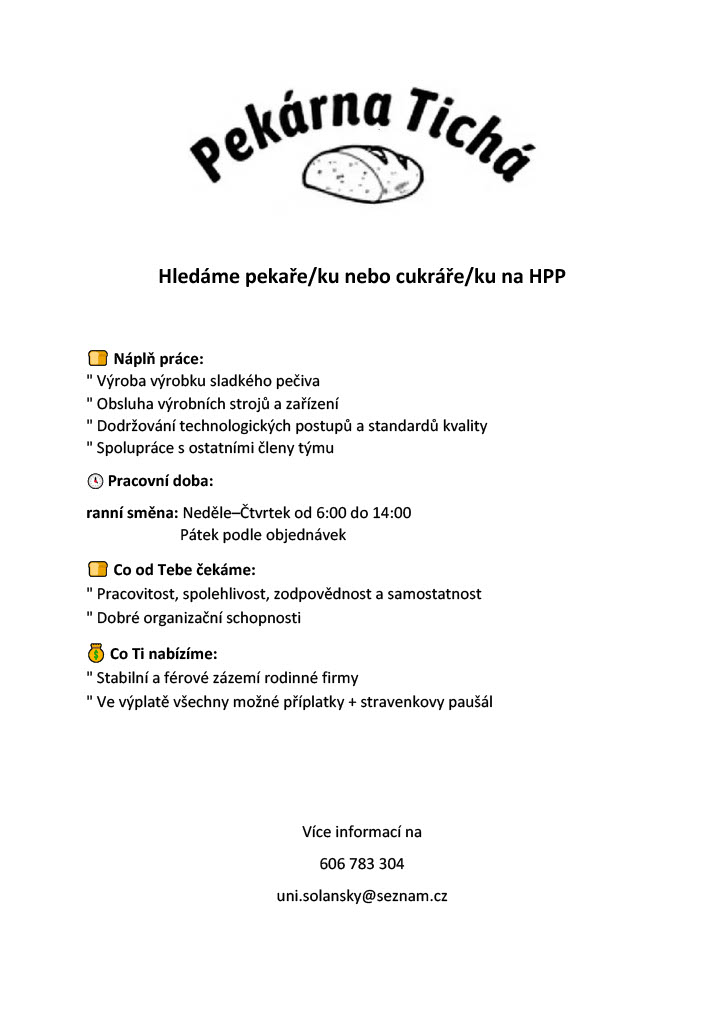 Rádi byste se stali členy naší pekárenské rodiny a přiložili ruku k dílu?